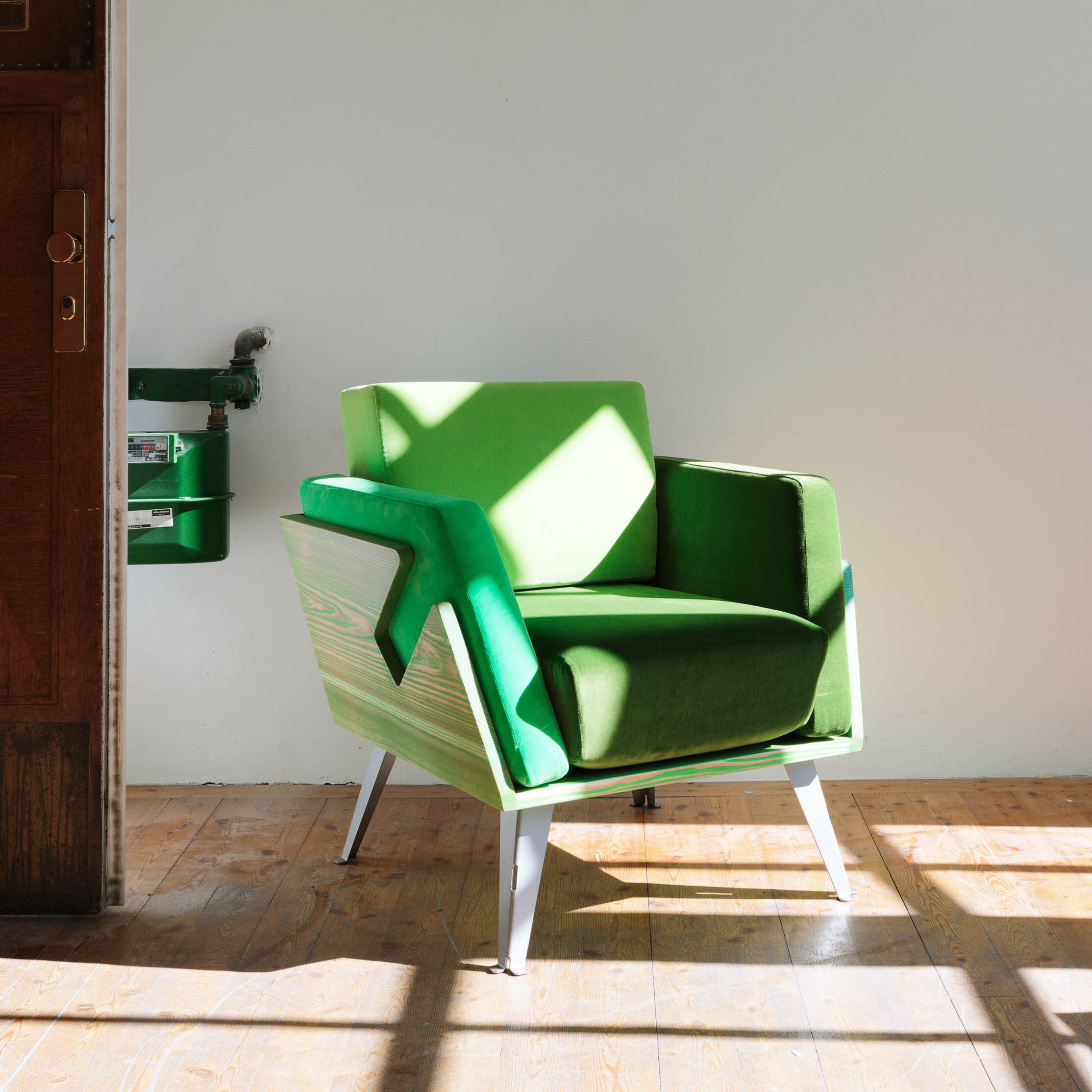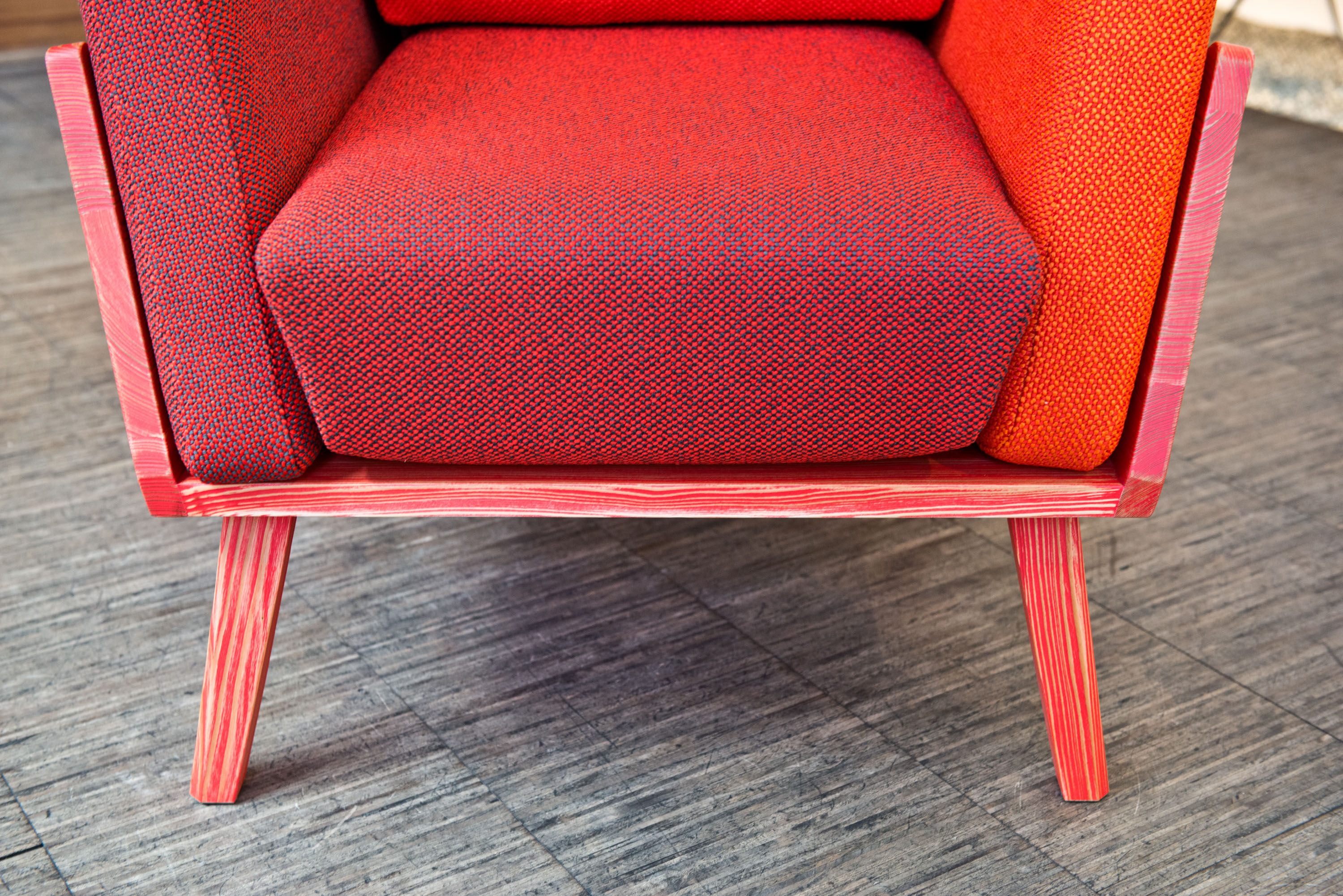 It offers a wide range of colour options. Both the stained larch wood and the upholstery can be customised to suit any colour preference.