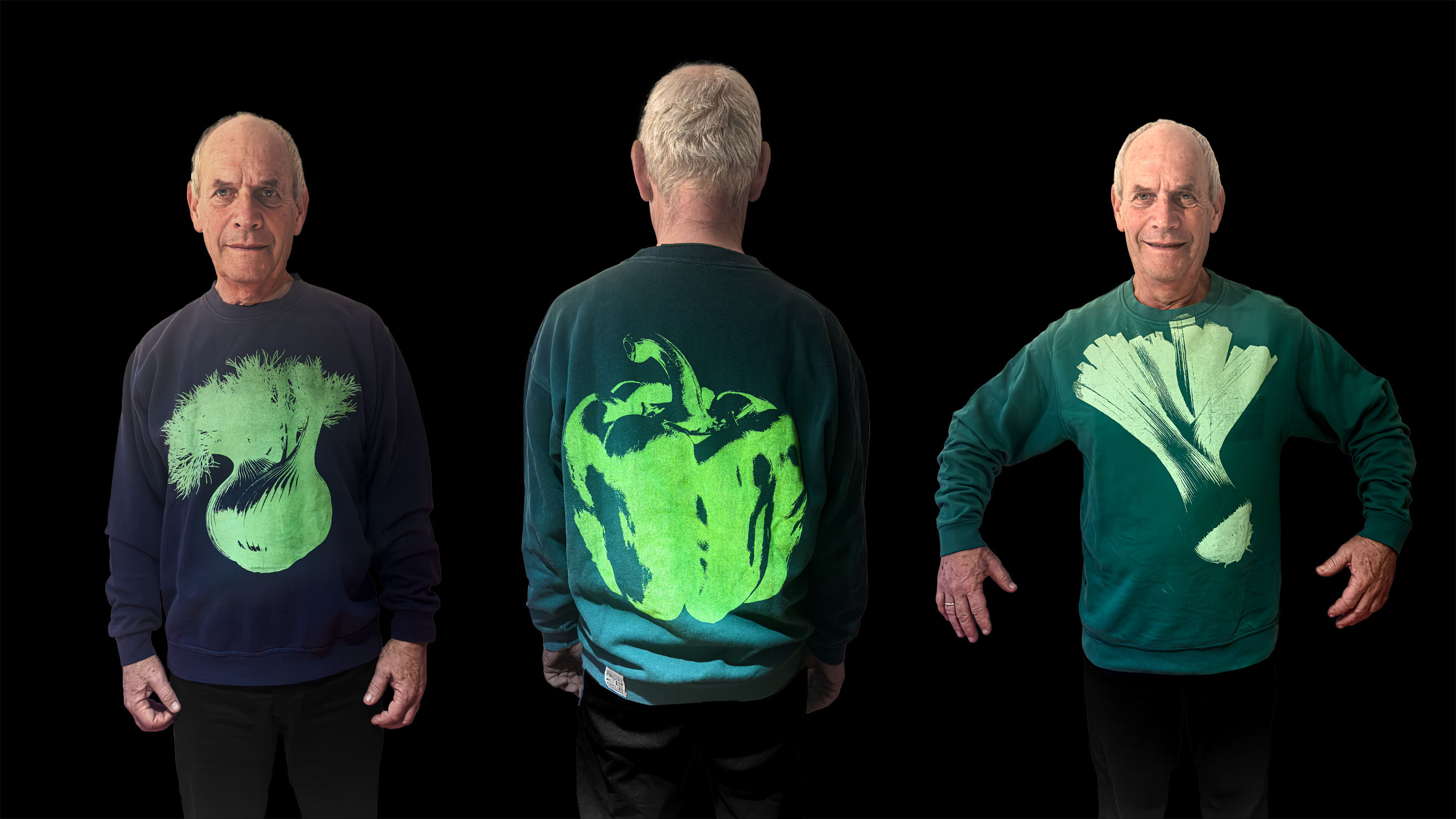 The vegetable motifs are used to print MINISTRY OF UPCYCLING's recycled Swaar shirts.