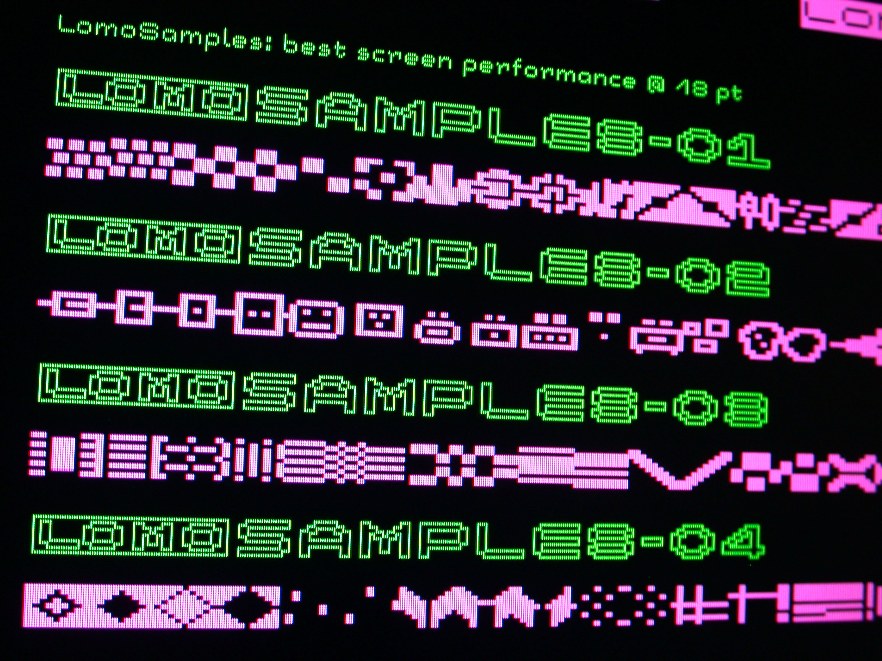 Click here to view the individual Lomo Font families: LomoWall • LomoWeb • LomoCopy • LomoSamples • Lomo(AS)ActionSampler