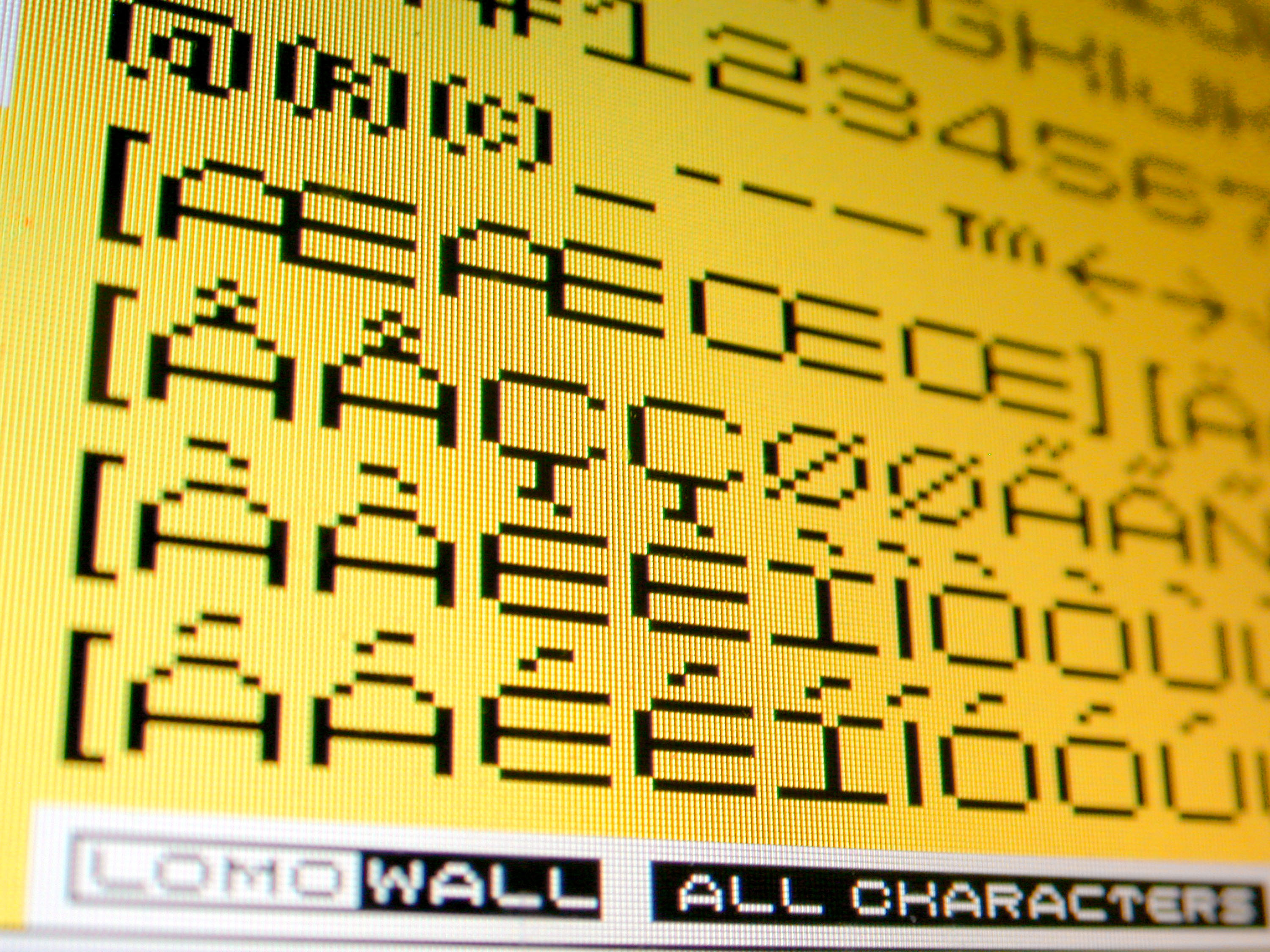 Inspired by the photo walls of Lomo Art Director Bernhard Winkler, LomoWall was created in 1997–1998. The starting point for this font family is the standard photo formats 10x7 or 15x10 used to design the Lomo walls; this resulted in the concept and grid for the title font. Despite the rectangular grid point (ratio 3:2), pixel-perfect graphics for the screen can be created with font sizes of 18 points and above. The various font styles can be individually combined to create an infinite number of design possibilities and designs. LomoWall is a font construction kit and was released by Linotype/Monotype in 2002.