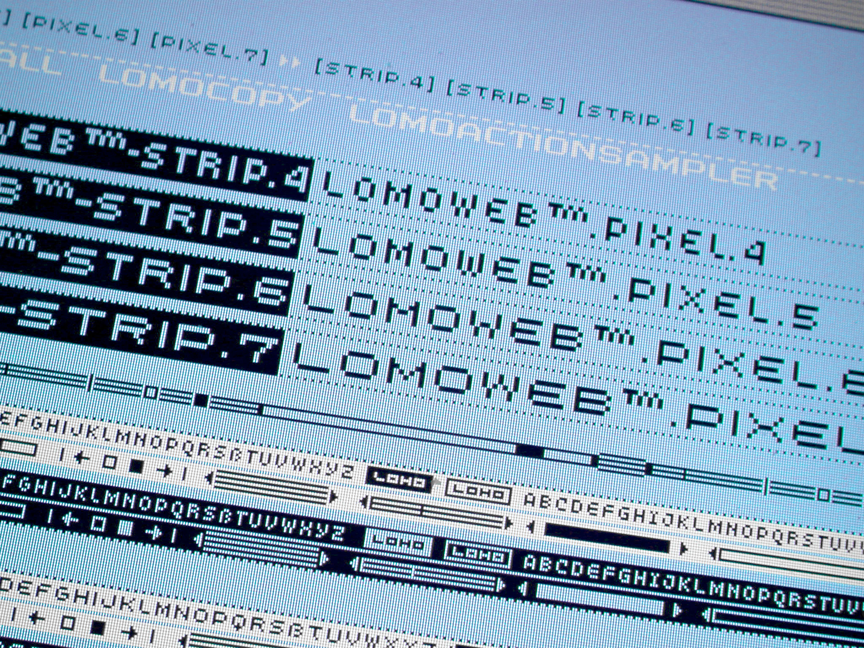 LomoActionSampler, the last and previously unpublished Lomo font, was created in 1999. Based on the idea of the LomoWall, it is built on a square and round pixel point. LomoActionSampler is ideal for font animation. The first applications of these animations were shown in 2000 in a joint ping-pong exhibition with Bernhard Winkler at the Eyefish Gallery in Kyoto, Japan.