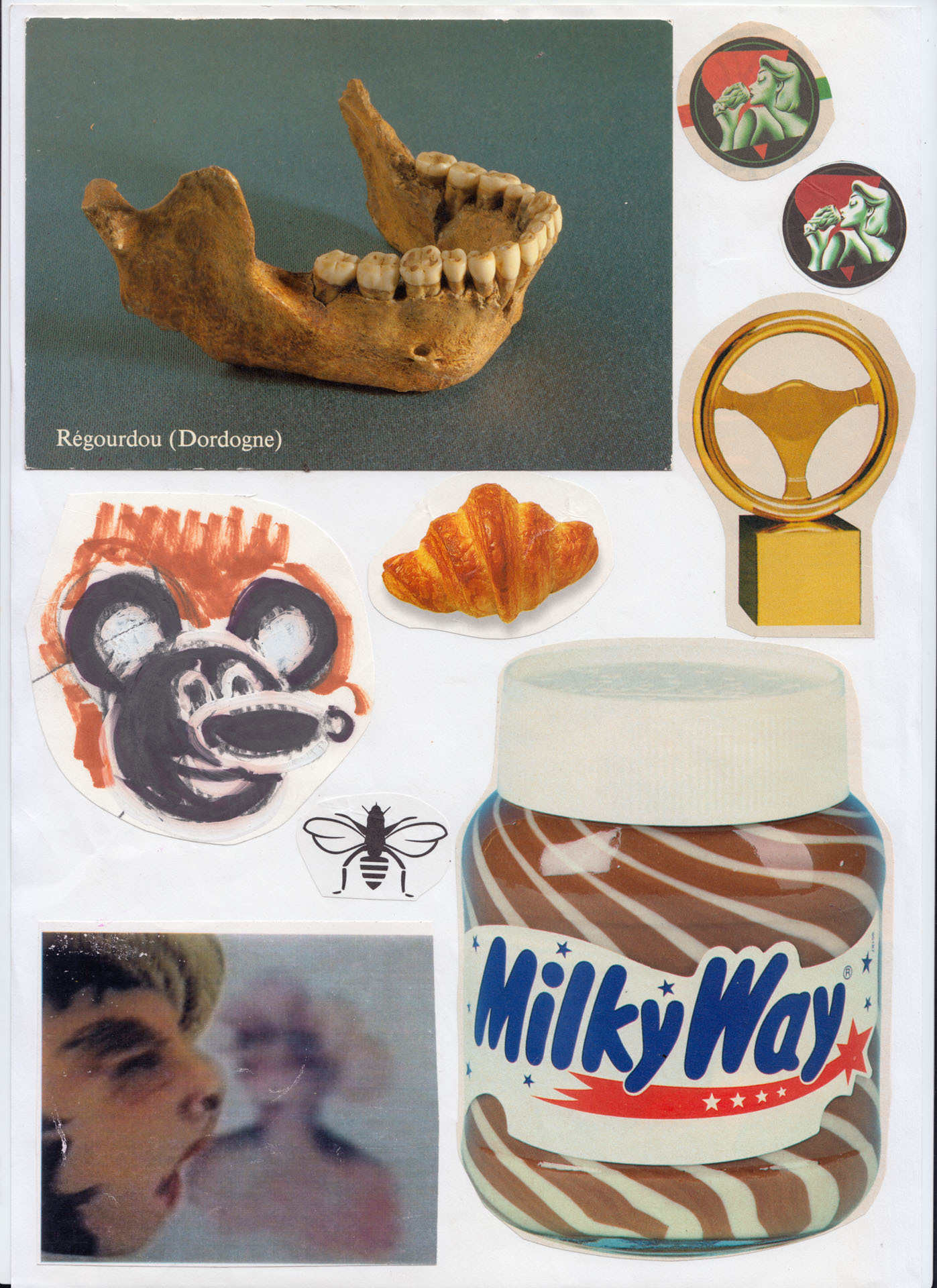 BB's Butterfinger is Fidel Peugeot's collection of small items that accumulate in boxes and are periodically mounted on A4 paper. The goddess of memory meets the god of forgetfulness.