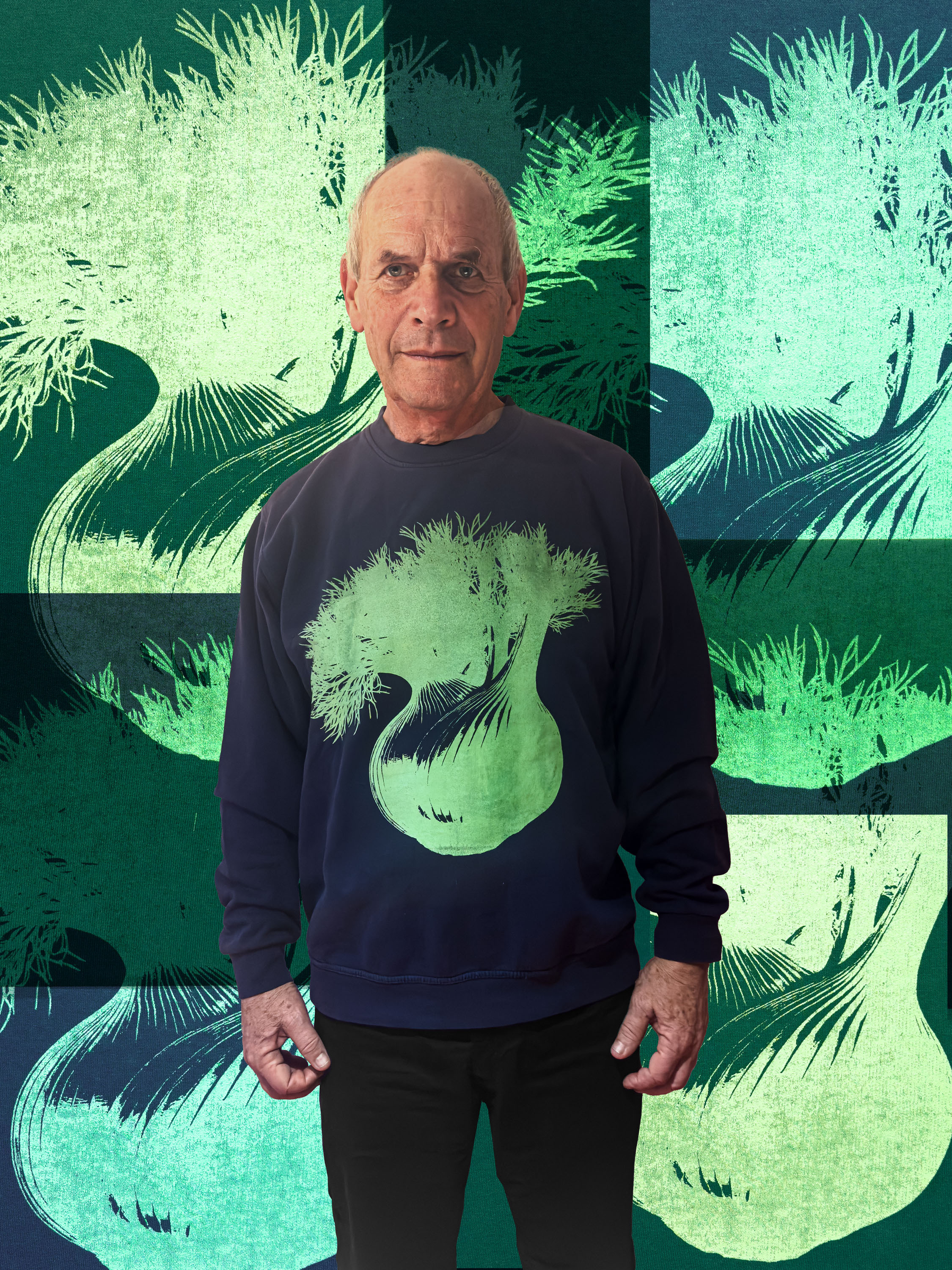 The vegetable motifs are used to print MINISTRY OF UPCYCLING's recycled Swaar shirts.