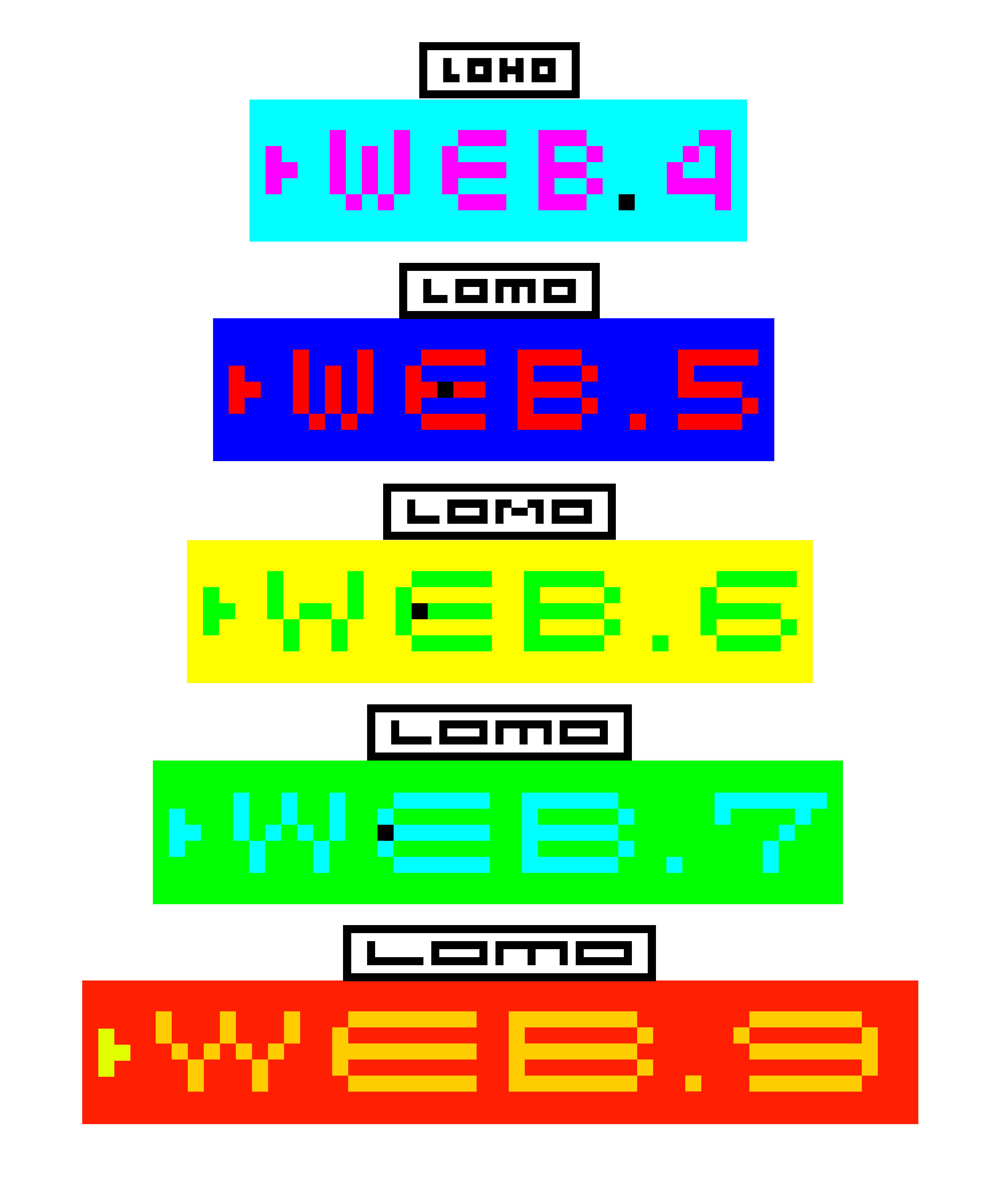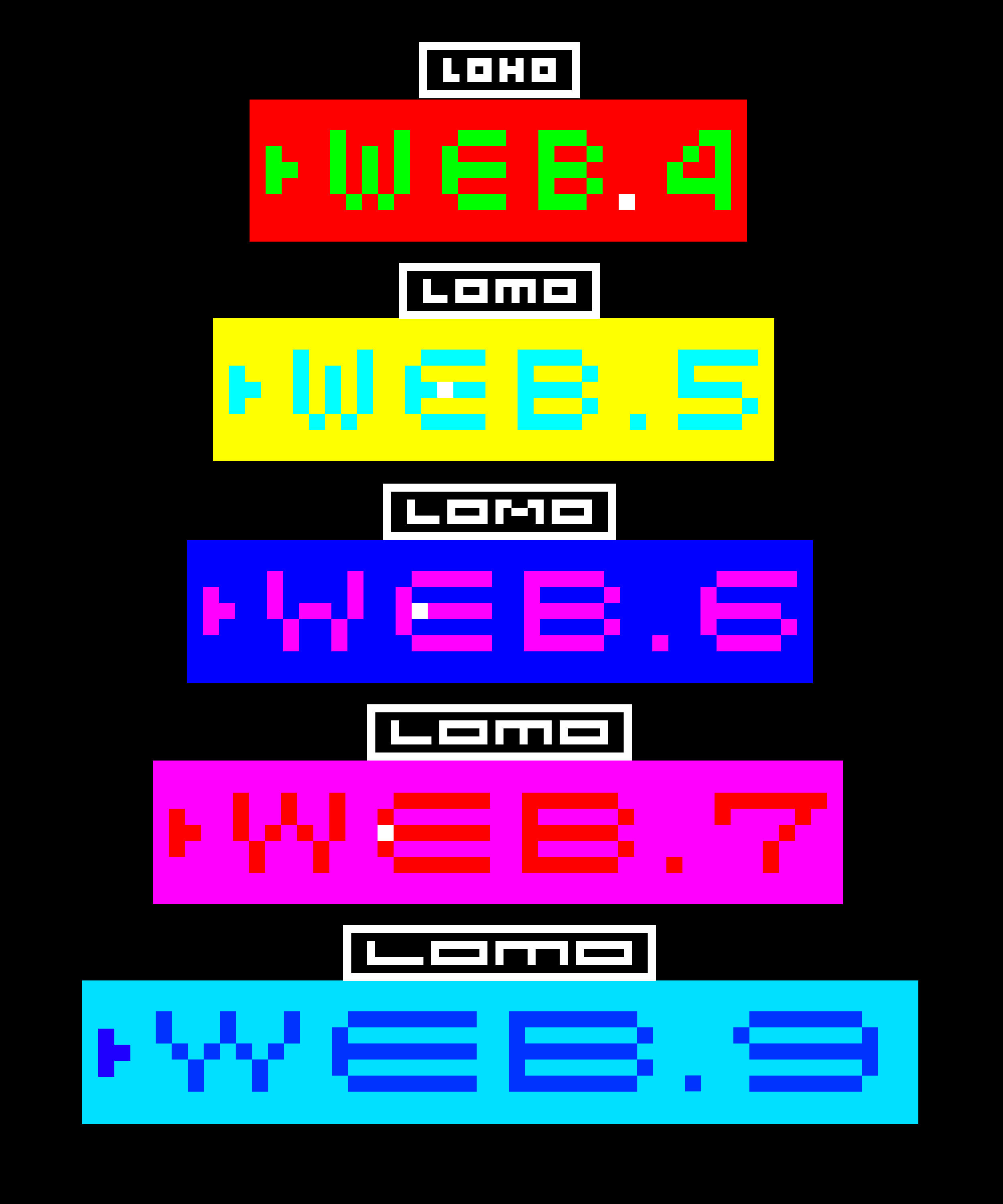 From 1997 to 1999, the Lomographic Society developed a new website with Australian web designer Julian Wong. Wong wanted a custom font for this design because there was no suitable font available on the global market for the internet at that time. As a result, the second Lomo font family was created almost simultaneously from 1997 to 1998: LomoWeb, a capital mini web font based on 5-pixel letter height and a square pixel point for the smallest possible use on screen. The font initially contained ten font styles to ensure typographic flexibility.