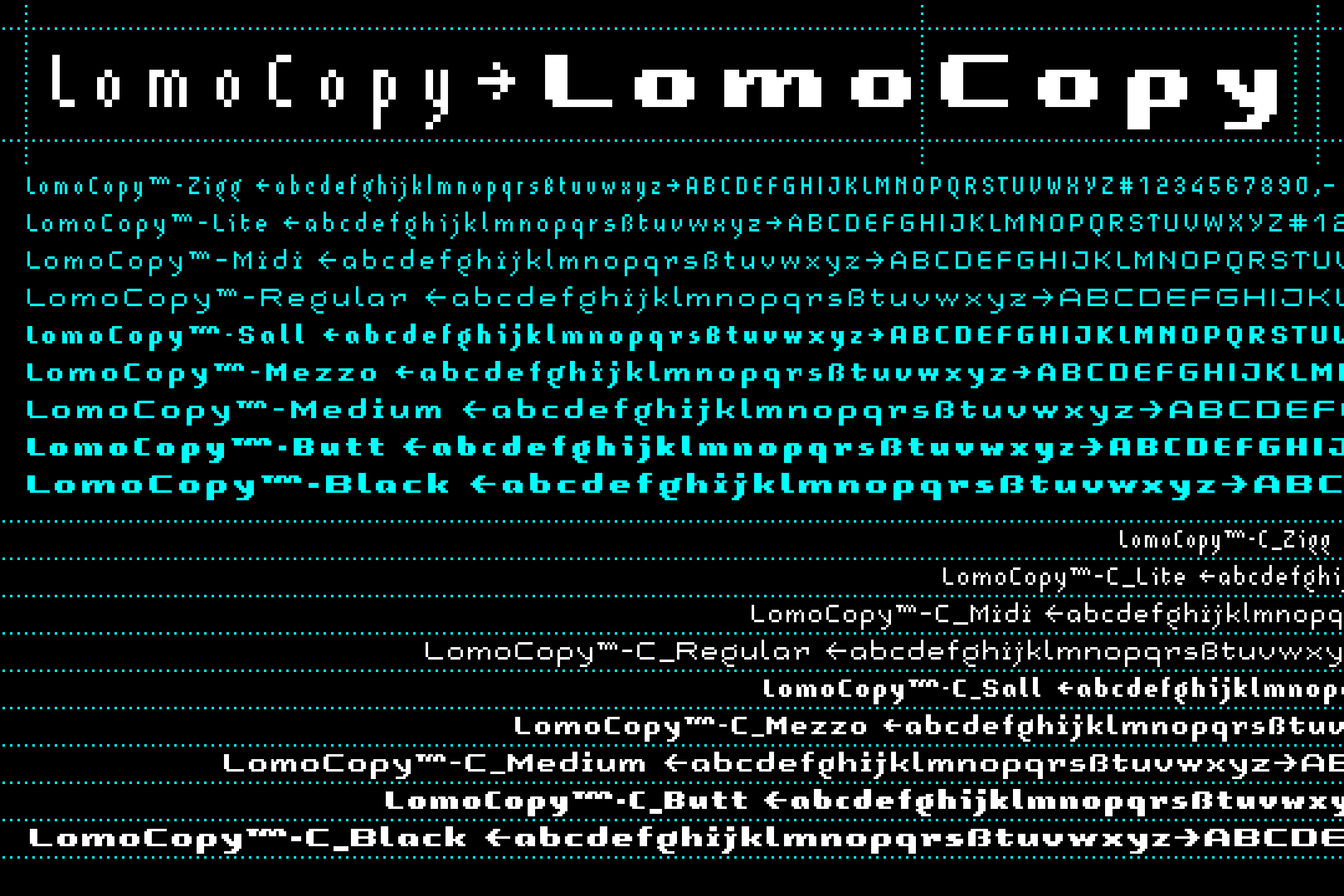 Click here to view the individual Lomo Font families: LomoWall • LomoWeb • LomoSamples • Lomo (AS)ActionSampler