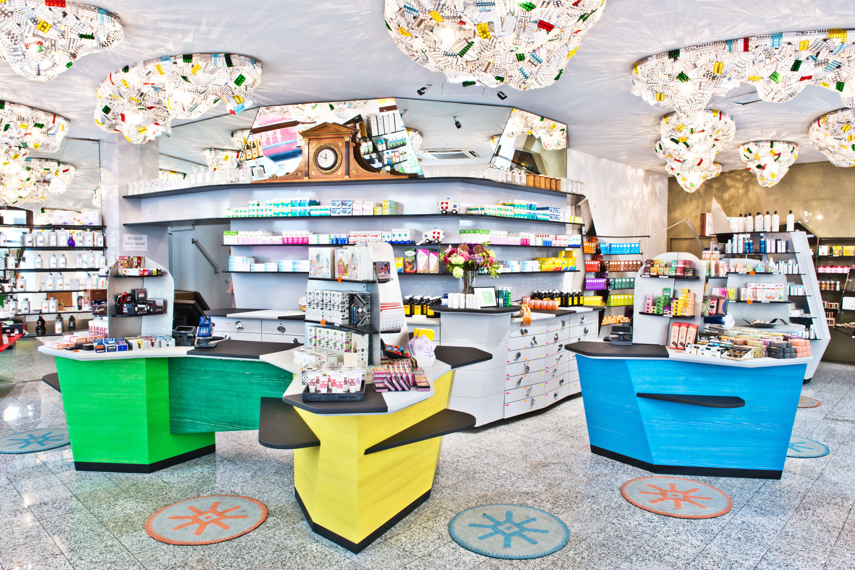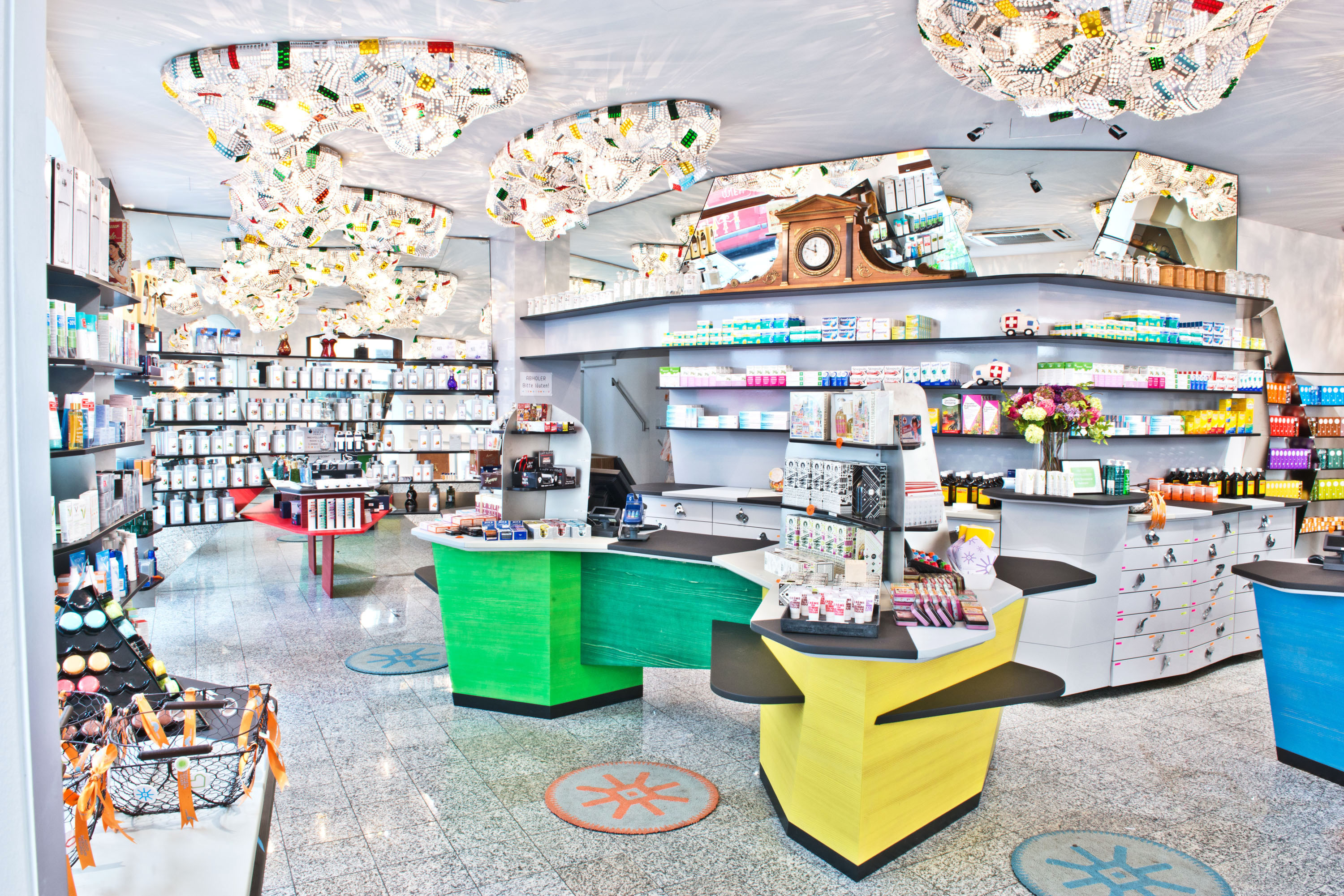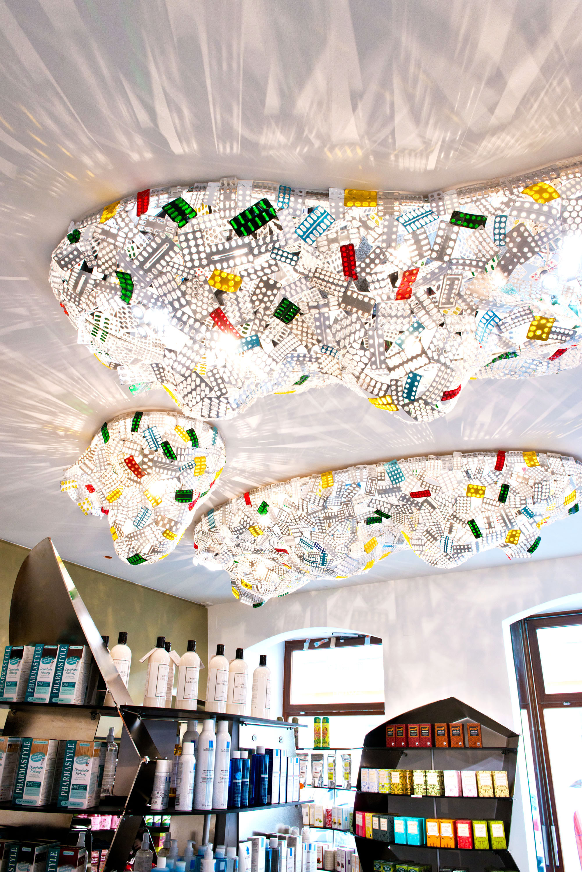 The pharmacist loves art and colours. In 2014, she had the dispensary redesigned. The explicit goal: to create an oasis of well-being for encounters with customers. The SISTER BLISTER installation provides the lighting in the pharmacy.