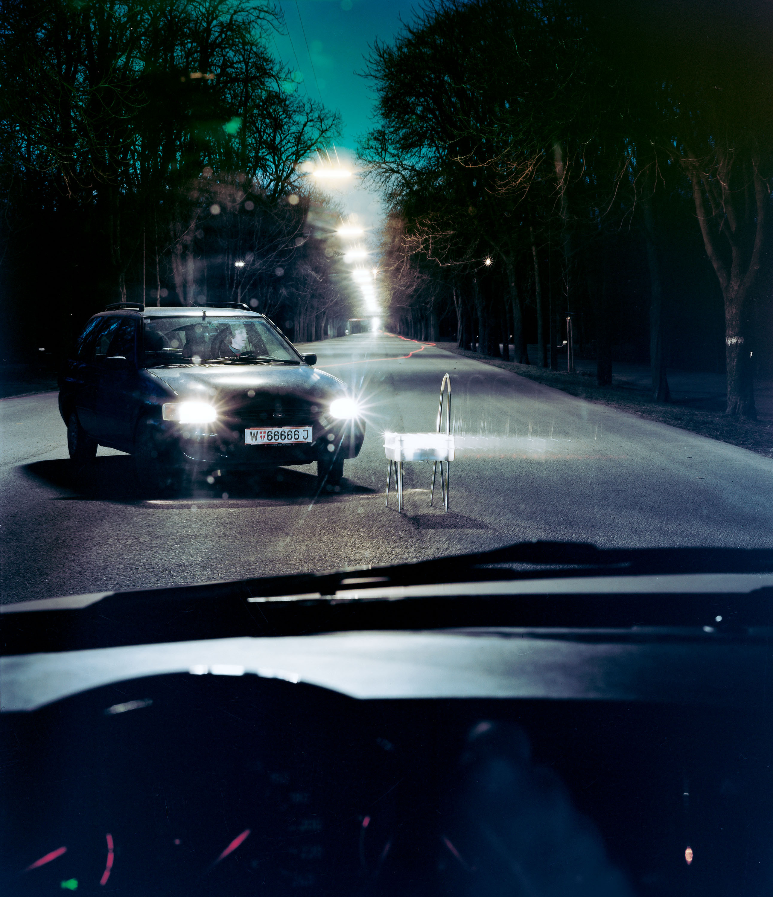 A Walking Chair is crossing Praterhauptallee in Vienna